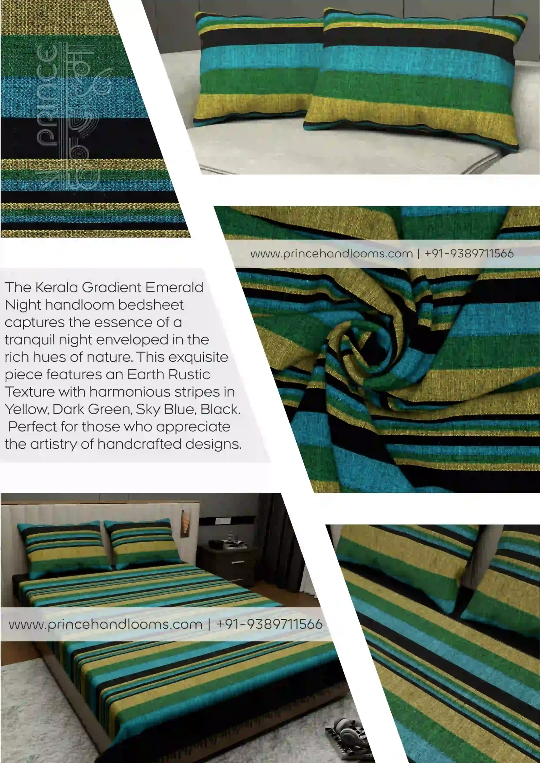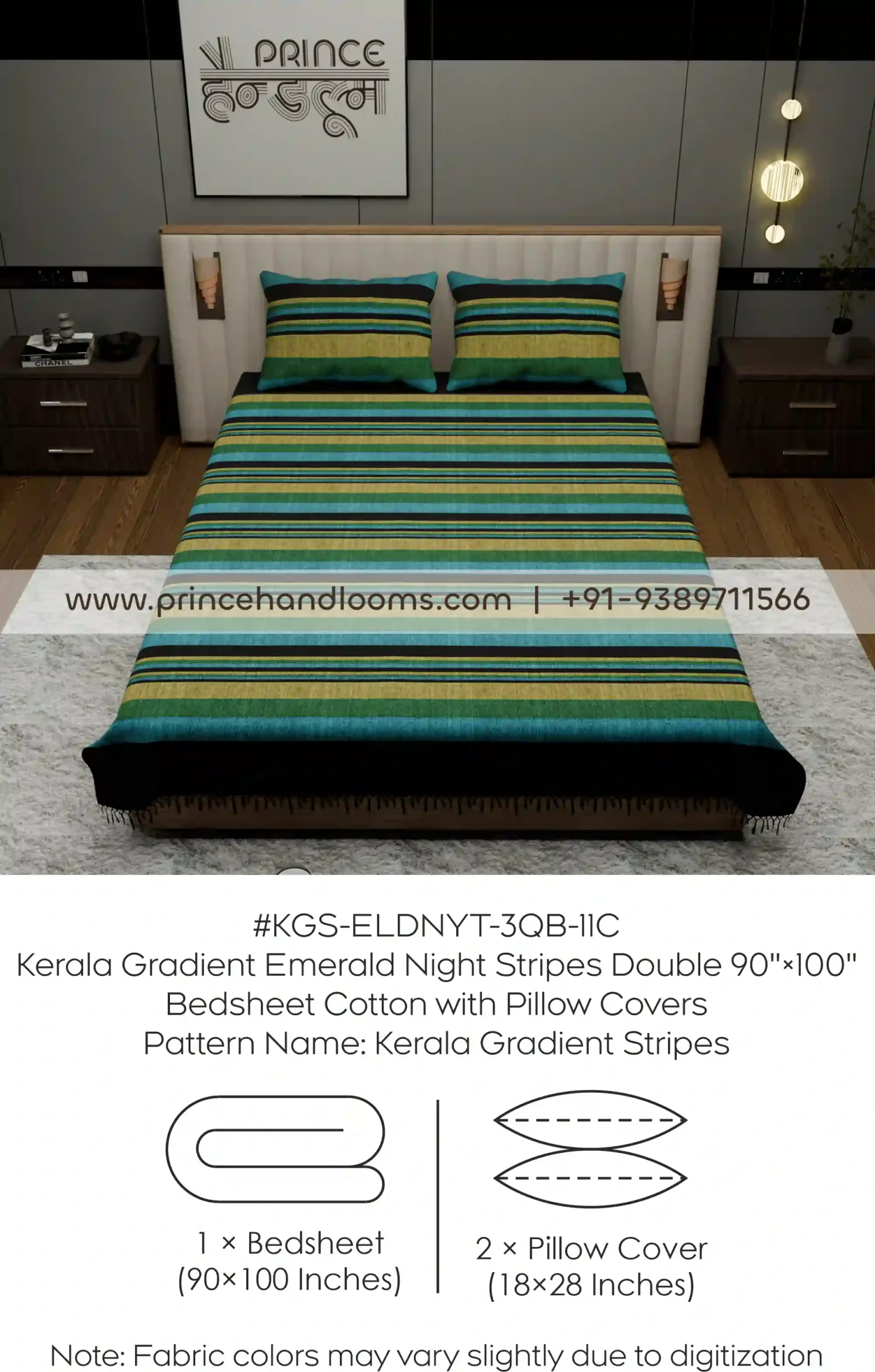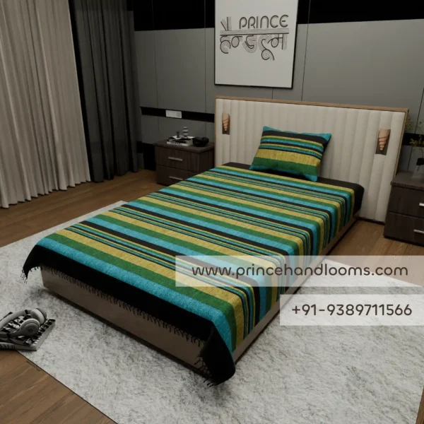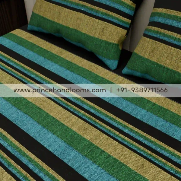 Kerala Gradient Emerald Night Stripes Double 90″×100″ Bedsheet Cotton with Pillow Covers
